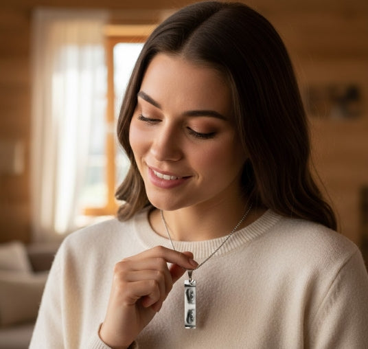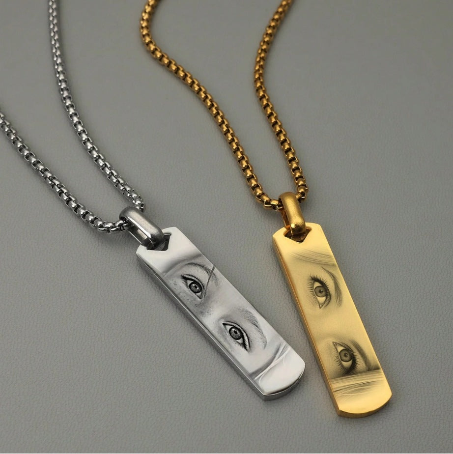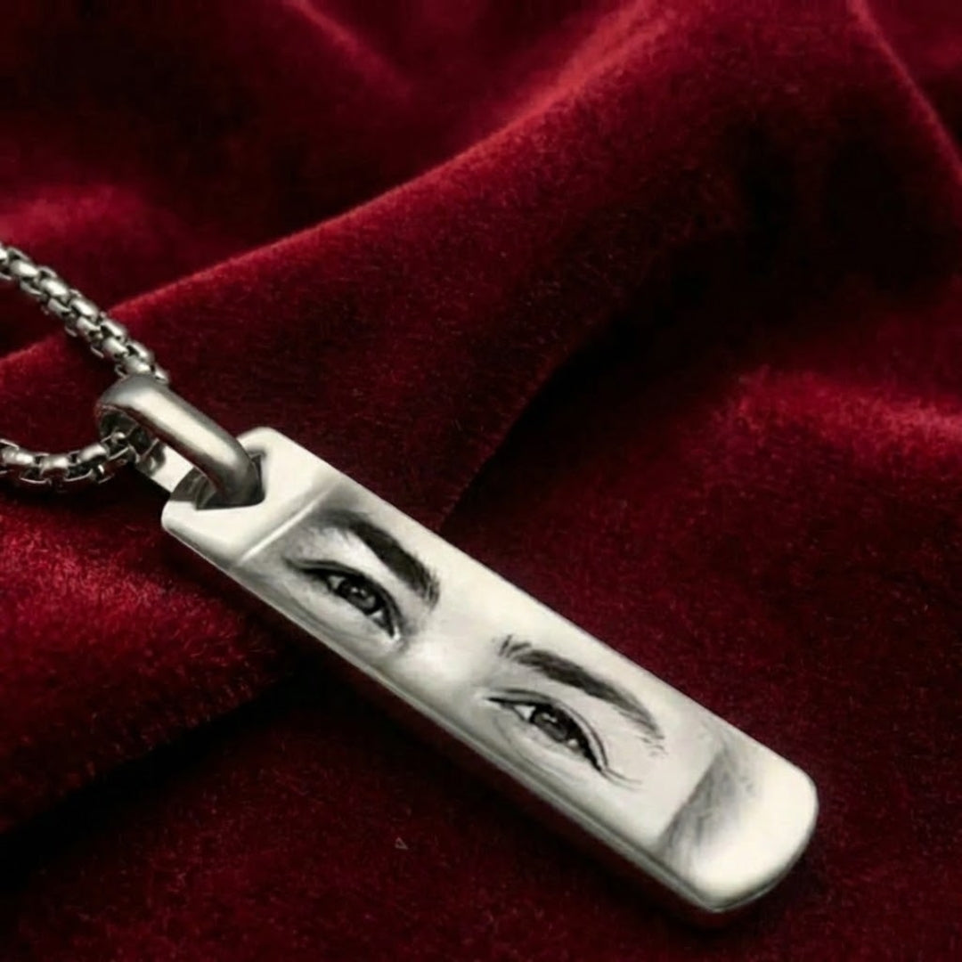 "A soul-deep connection, resting exactly where it belongs. Let their gaze be your constant companion, immortalised in polished steel and always held close to your heart. A bespoke tribute to a bond that knows no distance."